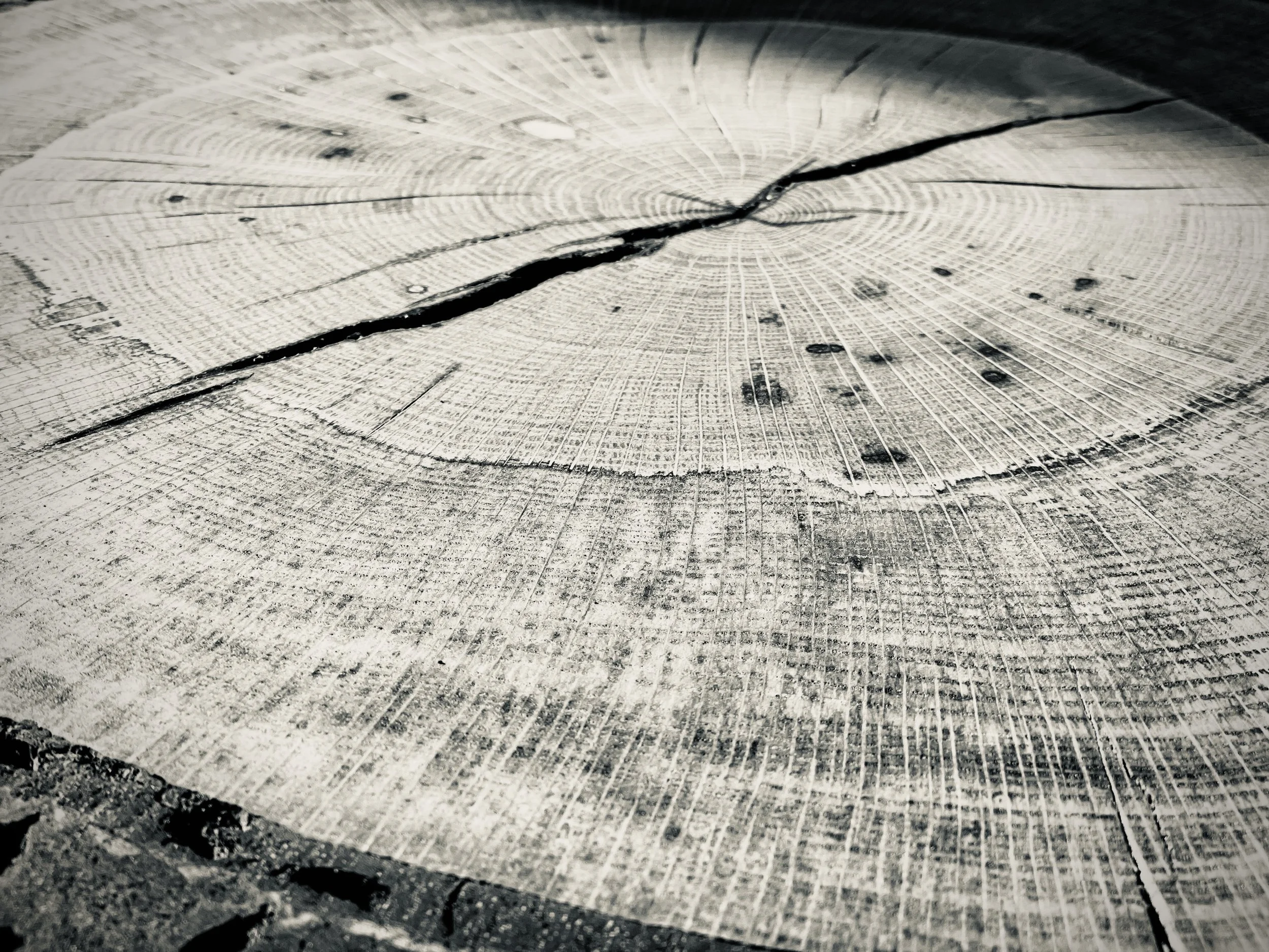 We took the slab from the field to the bar — removing rot and extensive bug damage, shaping the live edge carefully to preserve its natural curves, and strengthening the degraded wood with clear epoxy, creating a wood relic that transports the story of the Carmel Valley winery to the tasting room in Carmel-by-the-Sea.